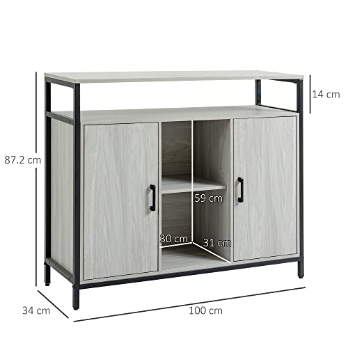 HOMCOM - دولاب جانبي خشبي عصري مع جزأين وأرفف من هومكوم، دولاب مطبخ ودولاب مدخل، رمادي فاتح، 100×34×87 سم، خليط معدني من الخشب الصلب الهندسي