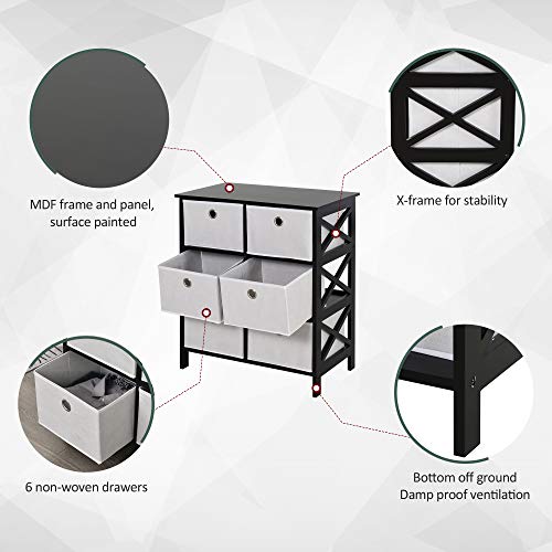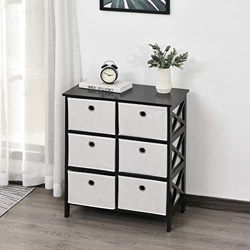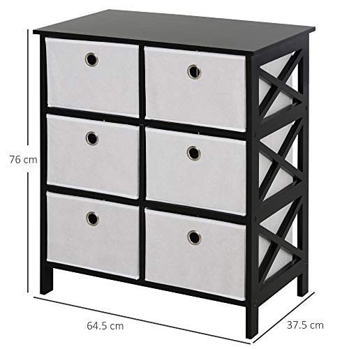 HOMCOM - دولاب أدراج محمول مصنوع من قماش غير منسوج، دولاب تخزين وتنظيم مع 6 أدراج، أسود