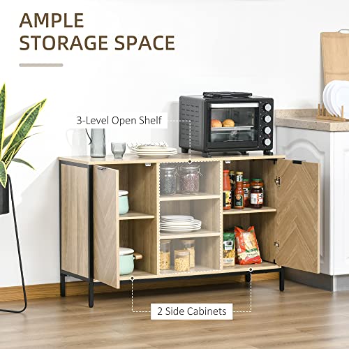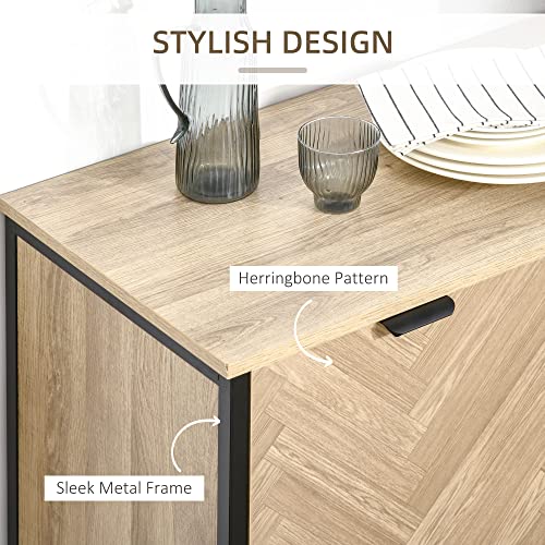 HOMCOM - HOMCOM Sideboard Storage Cabinet Cupboard TV Console with 2 Doors and Adjustable Shelves for Dining Room, Kitchen, Living Room, Oak Tone