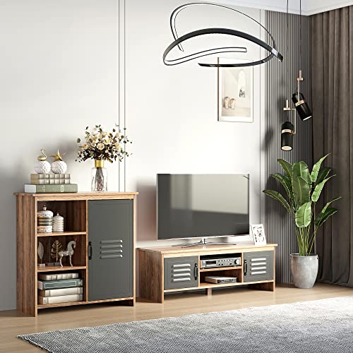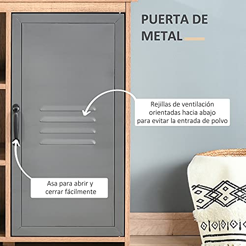 HOMCOM - دولاب جانبي من الخشب الطبيعي مع باب معدني هومكوم مساعد أثاث 3 أرفف مفتوحة ودولاب ورفوف قابلة للتعديل لغرفة المعيشة والمطبخ 80×35×82 سم رمادي