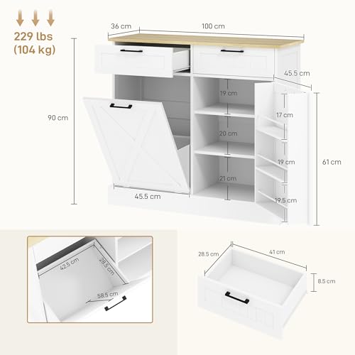 HOMCOM - HOMCOM Sideboard with Tilt-out Trash Bin, Farmhouse Kitchen Sideboard with 2 Drawers, Adjustable Shelves, Door Racks and Wood-effect Top, Freestanding Storage Cabinet for Kitchen, Dining Room, White