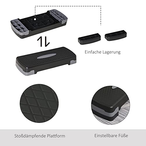 HOMCOM - هومكوم دراجة تمارين اللياقة البدنية الهوائية بمستويين بارتفاع قابل للتعديل (10/15 سم) مناسبة للاستخدام في المنزل والمكتب، اسود + رمادي 68 × 29 × 15 سم