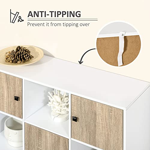 HOMCOM - دولاب مناسب للاستخدام مكتبة او رف للعرض بـ6 مساحات تخزين وابواب، لغرفة الطعام وغرفة المعيشة من هومكوم، لمسة نهائية خشب طبيعي، متعدد الألوان