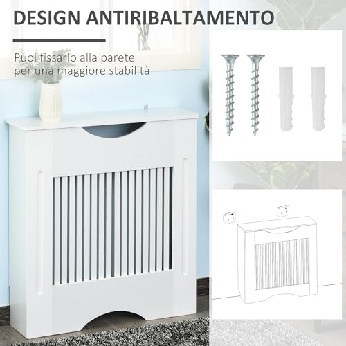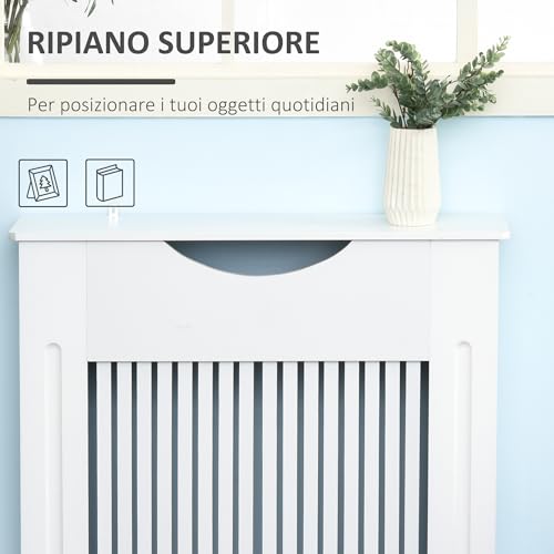 HOMCOM - غطاء ردياتير أبيض من خشب مضغوط MDF مع سطح طاولة وتصميم مضاد للطي من هومكوم، 78 × 19 × 82 سم