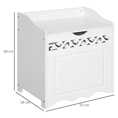 HOMCOM - homcom Wooden Bathroom Cabinet with Basket for Linen or Toys White MDF grade E1 55L x 34D x 58A cm white