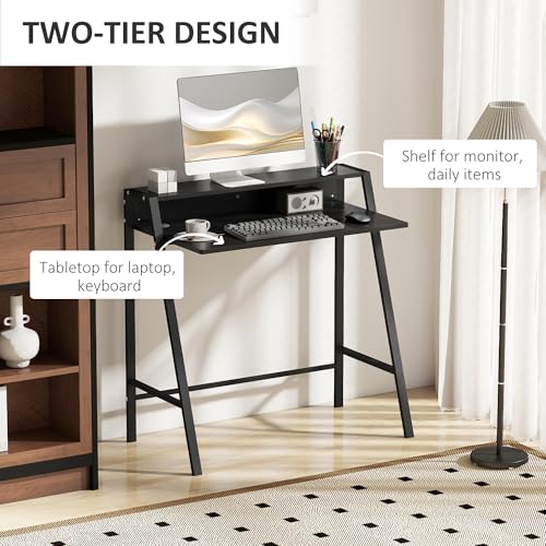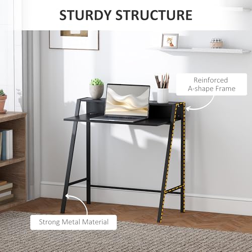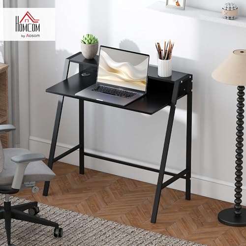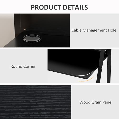 HOMCOM - مكتب للكتابة من هومكوم، طاولة كمبيوتر للمنزل والمكتب والكمبيوتر واللاب توب ومحطة العمل، رف تخزين باللون الأسود