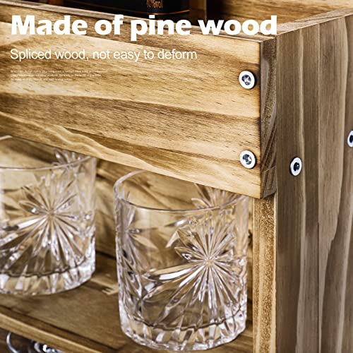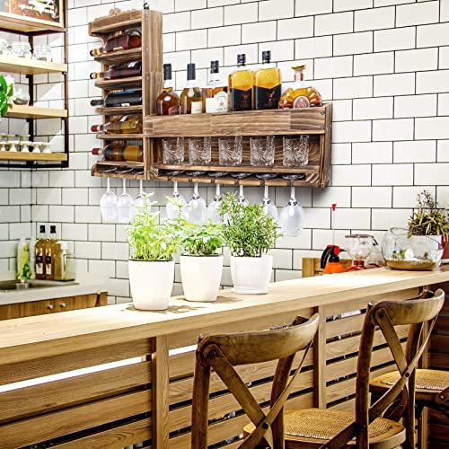 Homde - Homde Wine Rack Wall Mounted Wood,Alcohol Shelf with Bottle Stemware Glass Holder Rustic Whiskey Display Storage with Cork Storage for Home Bar Kitchen Decor (Regular Without LED)