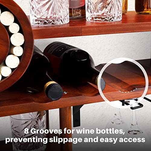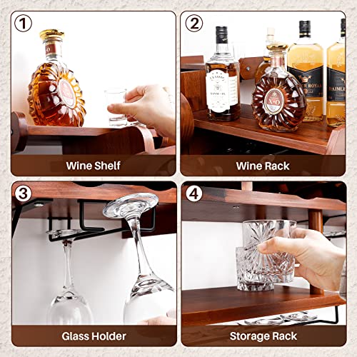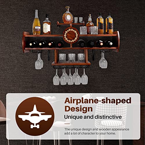 Homde - Homde Wine Rack Wall Mounted Wood,Wine Shelf with Bottle Stemware Glass Holder Rustic, Airplane Shape Multi Functional Wine Display Storage Rack for Home Bar Kitchen Decor (Dark Brown)
