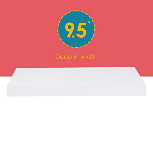 - Decorative floating wall shelf provides spacious surface to display family photos, artifacts, bath accessories and more