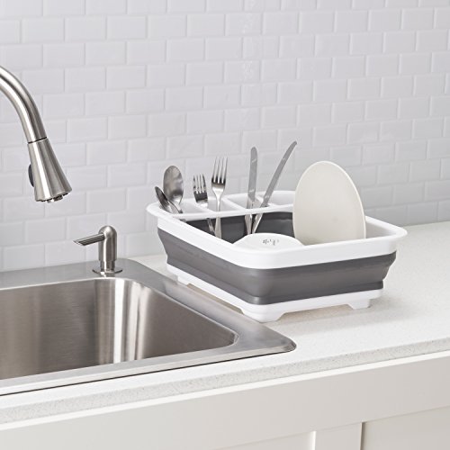 Home Basics - رف سيليكون لحمل الأطباق من هوم بيسيكس، أبيض، DR40460 DR40590