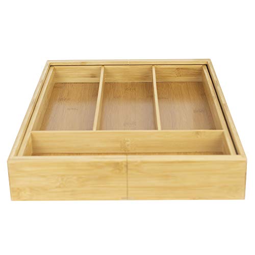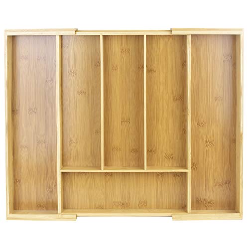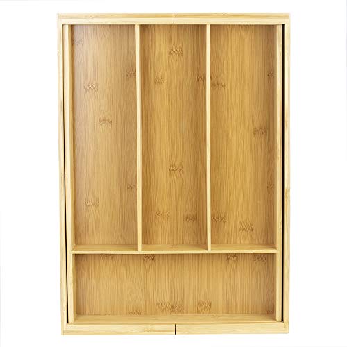 Home Basics - Home Basics Natural Expandable Organizer, Premium Cutlery and Utensil Tray-Pure Bamboo, Adjustable Kitchen Drawer Divider or Makeup