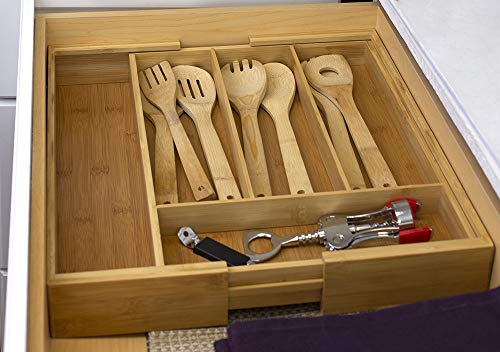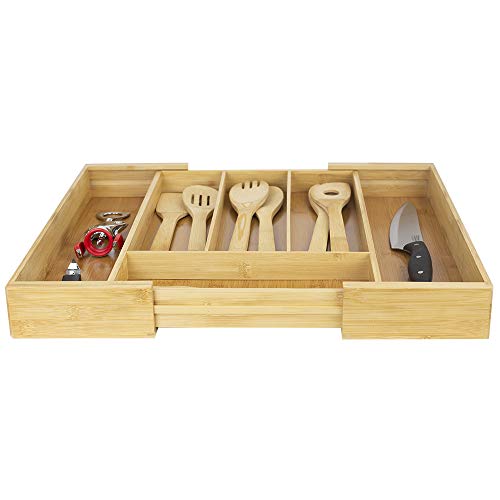 - Designed to love and last: made of all Natural Bamboo, This expandable utensil organizer brings beauty and function to the kitchen.