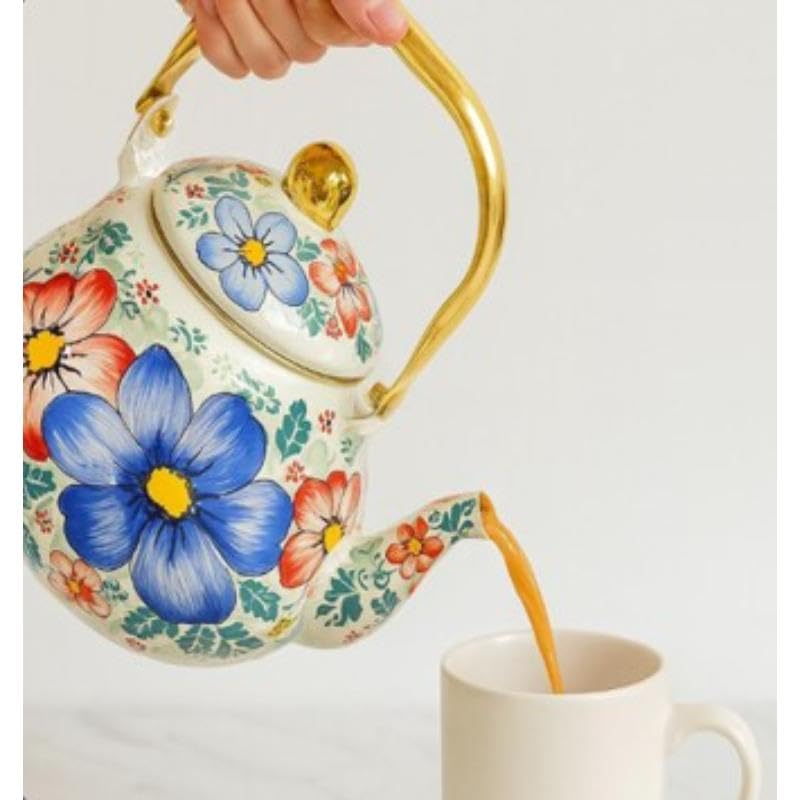 - Luxurious Golden Accents: Equipped with a high-polished golden arched handle and a matching lid knob, providing a sophisticated and premium contrast to the white floral body.