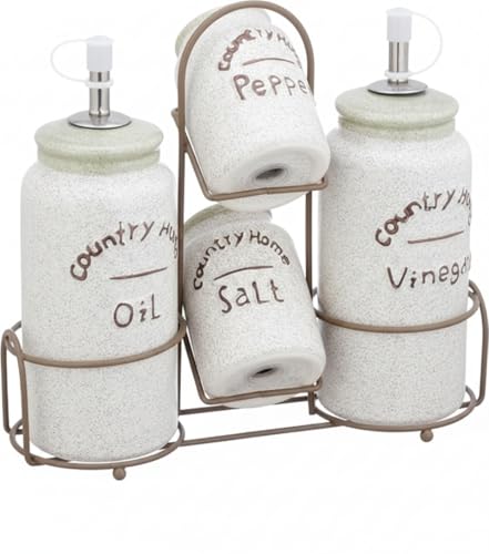 Home Care. - Home Care TT-1343 Porcelain Vinegar/Oil Set with 2 Salt Shakers Versatile Kitchen Storage, Pack of 1 - White Porcelain
