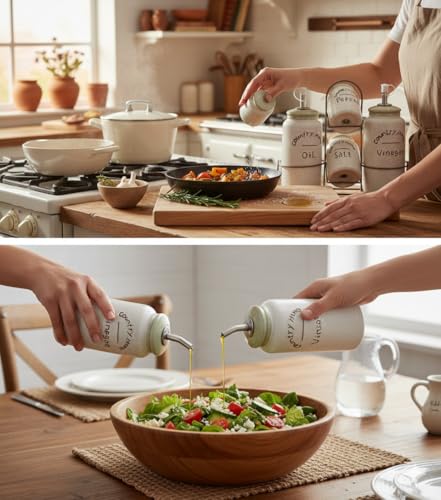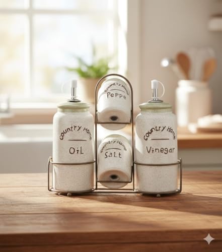 - Complete 4-Piece Culinary Collection: Includes two large ceramic bottles for "Oil" and "Vinegar," and two compact shakers for "Salt" and "Pepper," providing a comprehensive seasoning solution for your "Daily Life".