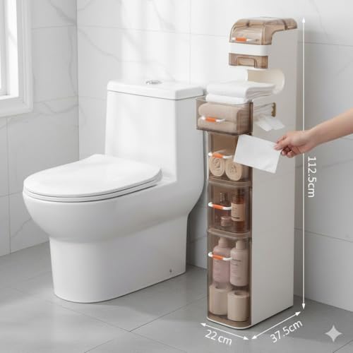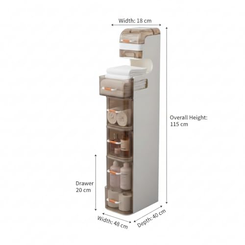 - High-Capacity 5-Tier Organization: Designed with multiple storage levels, including four enclosed drawers and a dedicated top compartment, providing ample space to categorize towels, skincare, and household essentials.