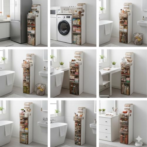 - Space-Maximizing Vertical Design: Features an ultra-slim, tall profile meticulously engineered to fit into narrow gaps and tight corners, making it the ideal storage solution for small bathrooms or laundry rooms.