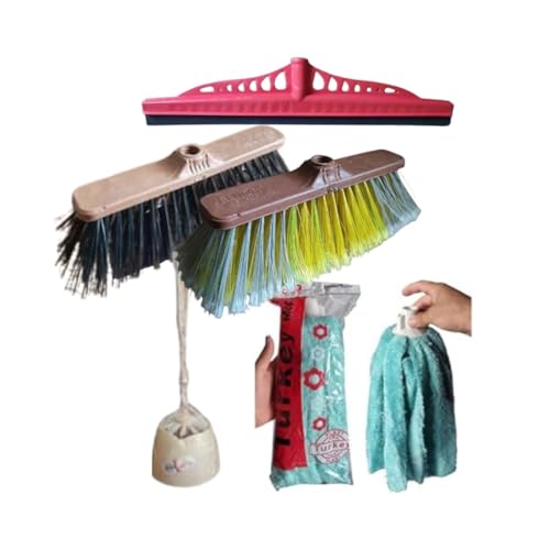 Generic - Home Cleaning Kit, 5 Pieces Must Have in Any Home, Rough Broom, Soft Broom, Large Space, Bath Brush, Mop