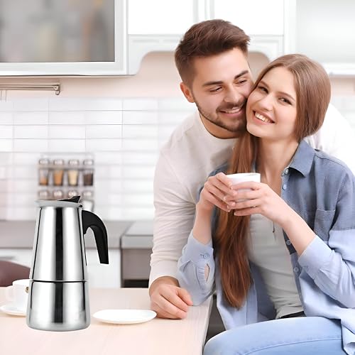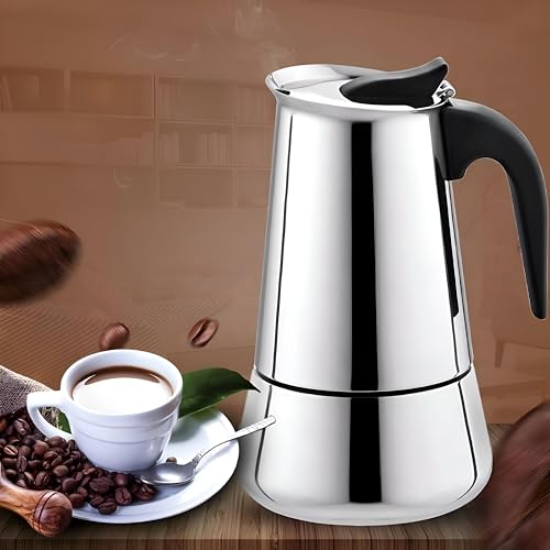 - Crafted from high-quality stainless steel, this espresso and moka pot ensures durability, safety, and a sleek appearance, making it a long-lasting investment for both home and professional use. Made from premium stainless steel, the material guarantees safety and health, with a sturdy build that withstands regular use. Its elegant design complements any kitchen or cafe setting.