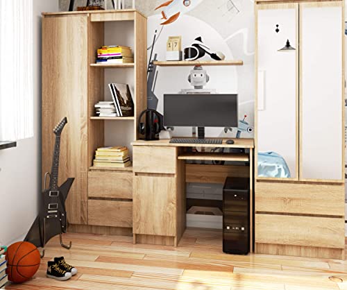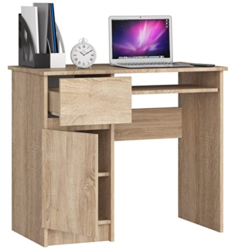 Home Collective - Home Collective Computer Desk Office Table with Extendible Keyboard Shelf, Desk Laminate Top with ABS Edge, with 1 Drawer and 1 Door Left, 90 x 50 x 77 cm, Sonoma Oak