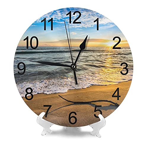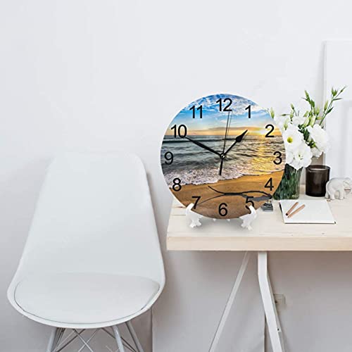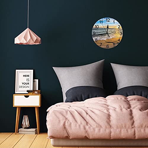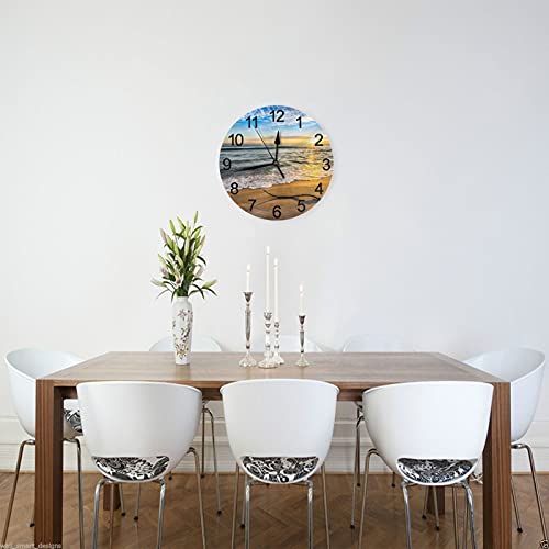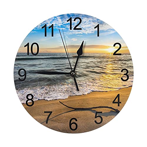 pingwpinw - ساعة حائط لديكور المنزل بتصميم غروب الشمس على الشاطئ، ساعة حائط صامتة بلا تكتكة، ساعة الكترونية دائرية للحمام وغرفة النوم والمطبخ وغرفة المعيشة والمكتب والمدرسة، بولي فينيل كلورايد، تناظري