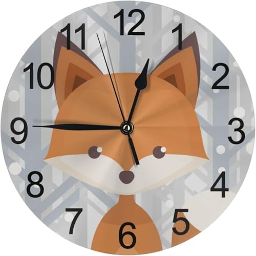Generic - Home Decor Wall Decor Wall Clock Brown Fox Silent Non Ticking Round Electronic Clocks for Bathroom Bedroom Kitchen Living Room Office School.