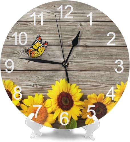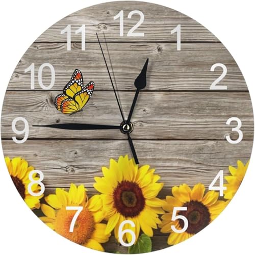 Generic - Home Decor Wall Decor Wall Clock Sunflowers Wooden Vintage Silent Non Ticking Round Electronic Clocks for Bathroom Bedroom Kitchen Living Room Office School.