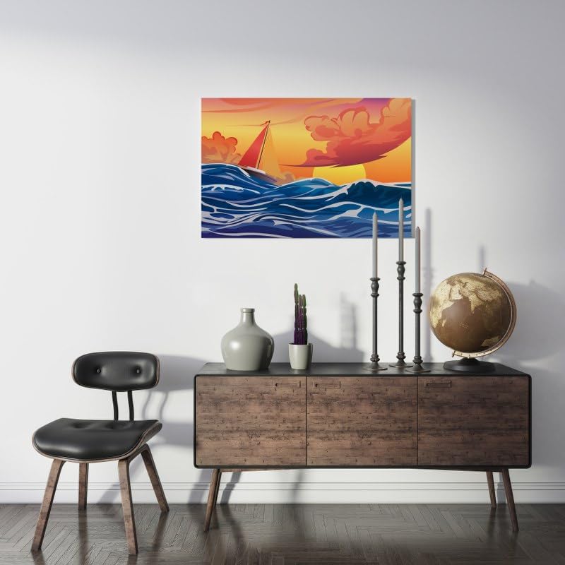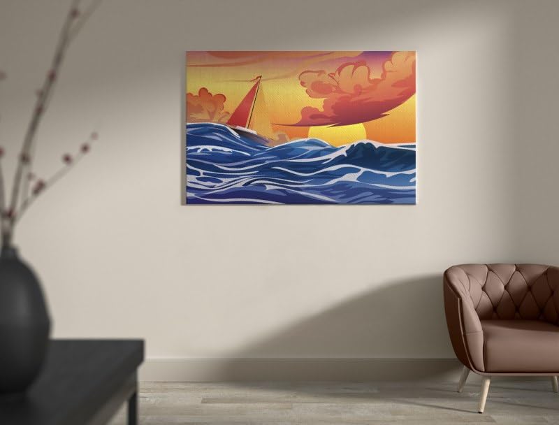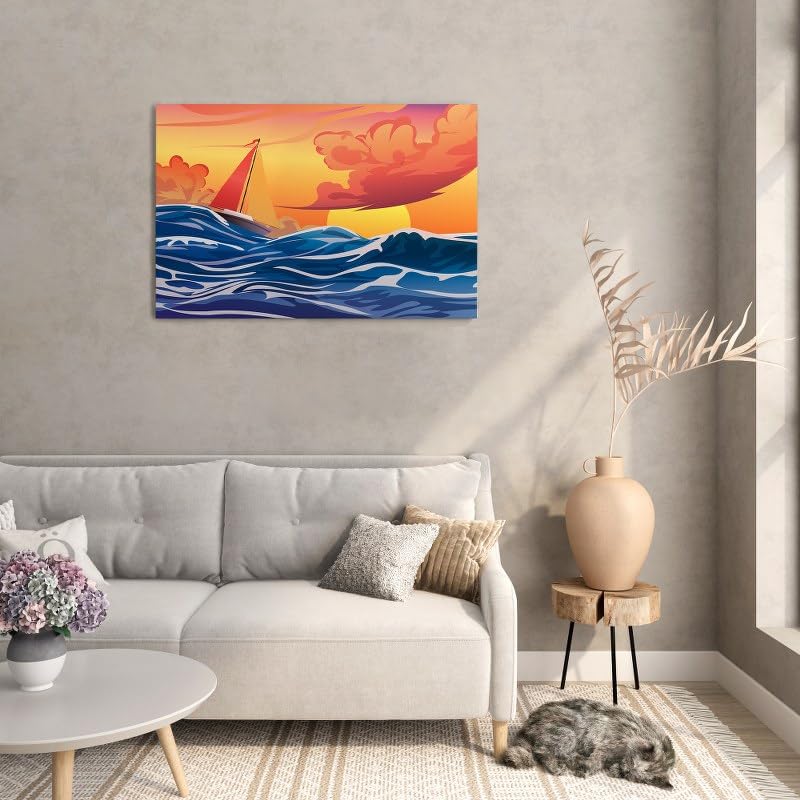 Home Gallery - Home Gallery Boat in stormy sea illustration Printed canvas wall art 120x80