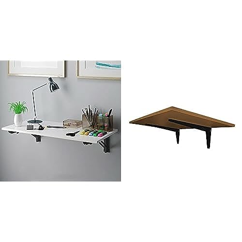 Home Gallery - مجموعة مكونة من ترابيزة مكتب قابلة للطي تثبت على الحائط مقاس 120 × 60 سم بلون ابيض واسود + حامل قابل يثبت شكل اوراق الشجر 90 50 لون بني هوم جالاري