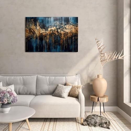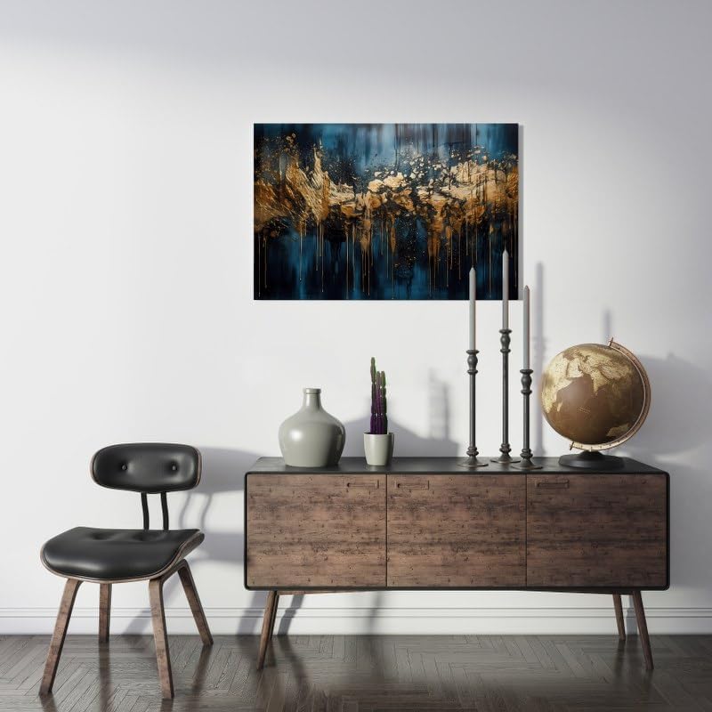 - Home Gallery Dark Blue And Gold Abstract printed canvas wall art 120x80