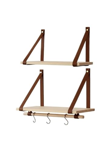 Generic - ارفف حائط عائمة بحزام من الجلد الصناعي من هوم جاليري، لون بيج