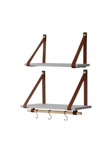 Generic - Home Gallery PU Brown Leather Strap Wall Floating Shelves Gray