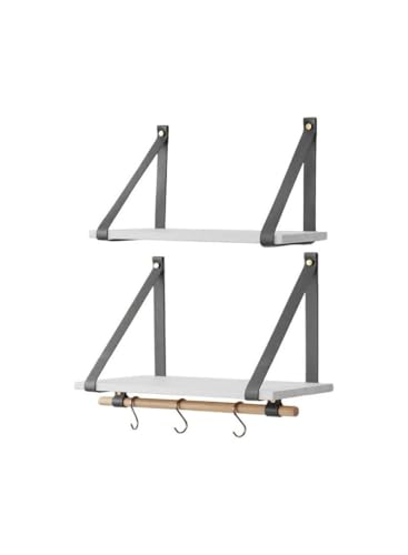 Generic - Home Gallery PU Gray Leather Strap Wall Floating Shelves White
