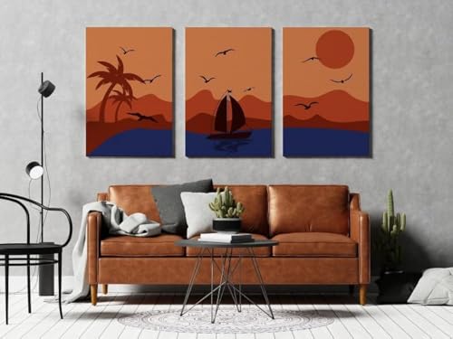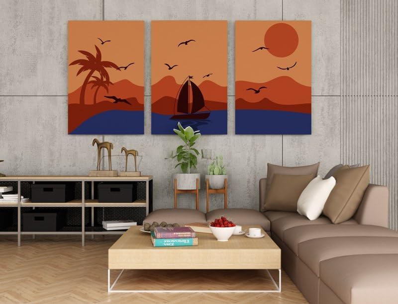 Home Gallery - Home Gallery Set of Set of 3 sunset on the sea Printed canvas wall art 90x60 cm