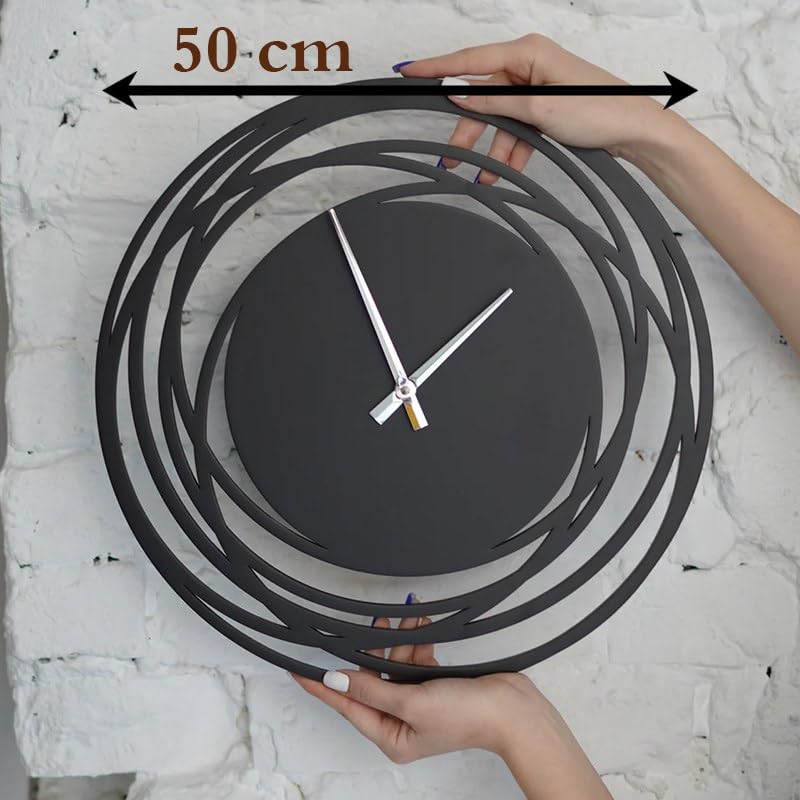 Home Gallery - ساعة حائط بتصميم ريفي فريد، أسود، 50 سم، من هوم جالاري، خشب مُصنع، تناظري