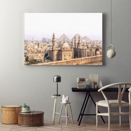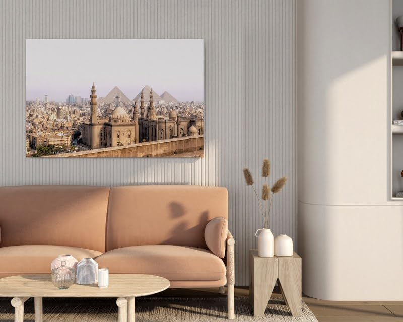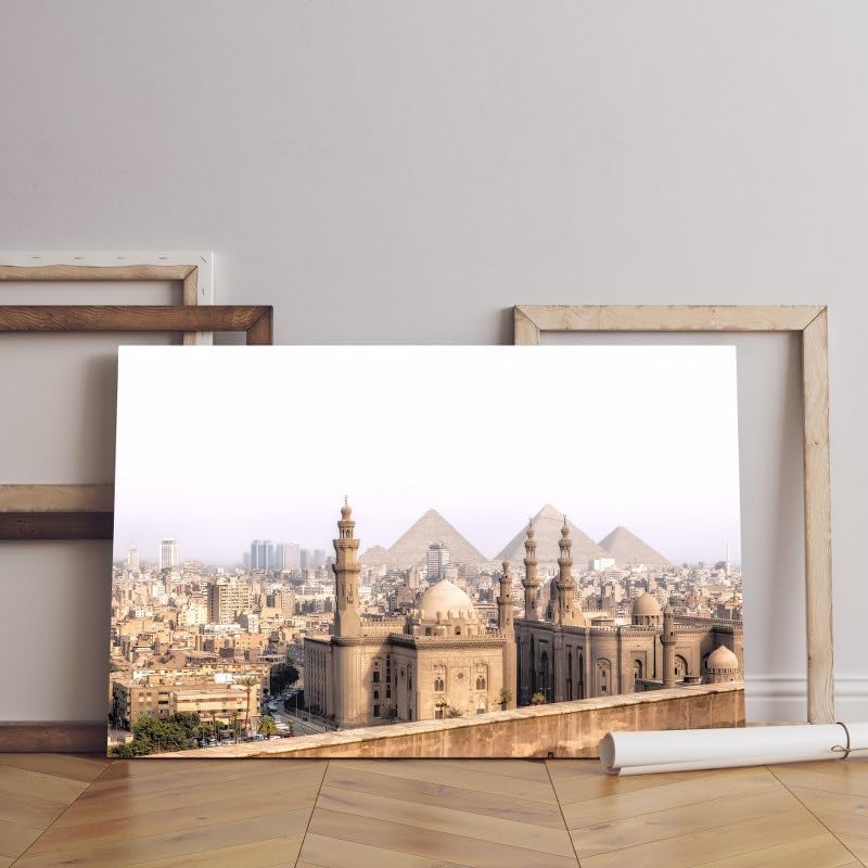 Home Gallery - منظر لمسجد السلطان حسن القاهرة مع اهرامات الجيزة مصر 90x60، بيج