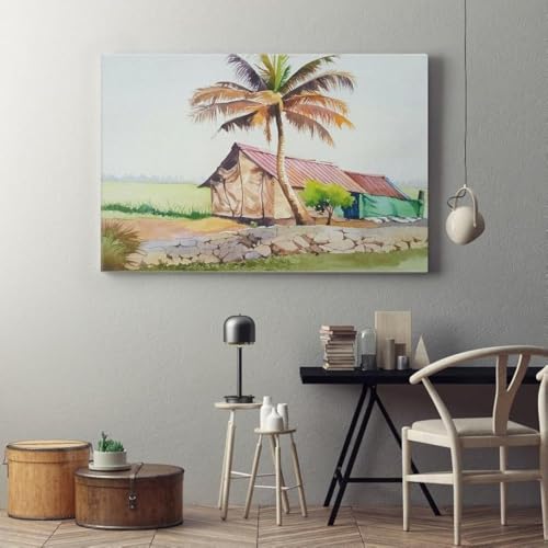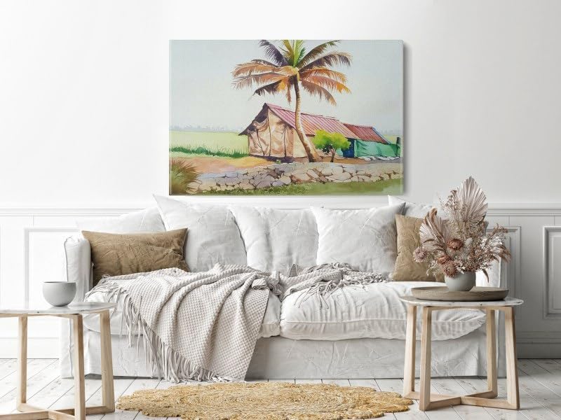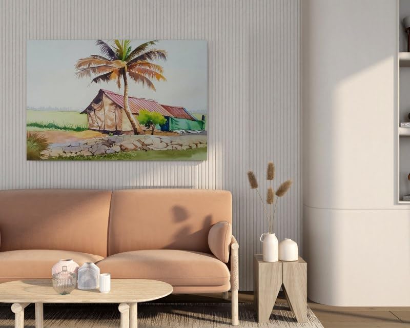 Home Gallery - لوحة الوان مائية للمبتدئين بتصميم اشجار جوز الهند مقاس 90×60، بيج