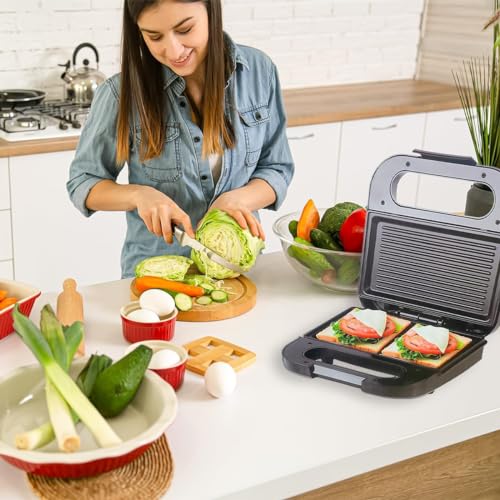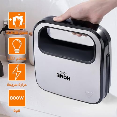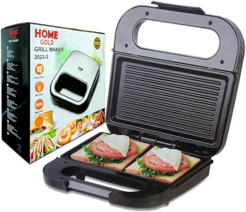 Generic - Home Gold 800W Sandwich Maker, High Power Electric Grill with Double Sided Heating and Easy Clean Non-Stick Coating - Portable and Safe Cooking Companion, 2023-3