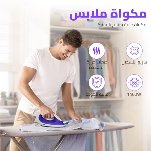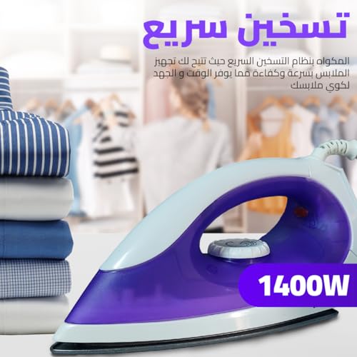 Generic - HOME GOLD Dry Iron Effortless Ironing with Large Floor, Rapid 15-Second Heat-Up, Dual Ironing Modes, Overheat Safety, 1400W Power, and Non-Stick Coating, HG-898A (Purple)