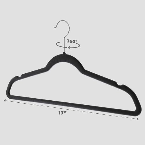 Home-it - Home-it Premium Velvet Heavy duty Non slip Black Suit Clothes Hanger Hook swivel 360-Ultra Thin, 50 Pack