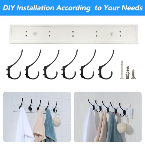 - Wonderful Decoration: Solid wood wall coat rack add a touch of rustic beauty to your entryway, hallway, kitchen, closets, bedroom or anywhere else. White board hook rail snd matte black aluminum hooks will add some classic minimalist flair to compliment your room. Also a wonderful gift choice for your friends’ house warming