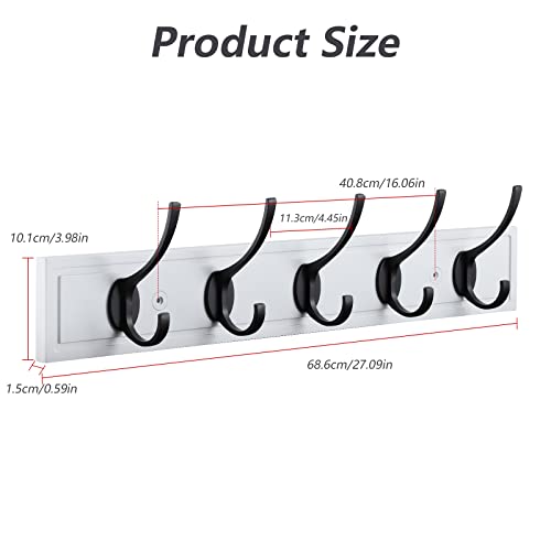 - Space Saving: The wall mounted coat rack with 5 double hooks suit for hanging jackets, coat, hats, scarf, towel, keys, umbrella, bags, Christmas socks and Christmas wreath, to keep your home organized and neat. Perfect to use in bathroom, bedroom, kitchen, closet, foyer, entryway and more