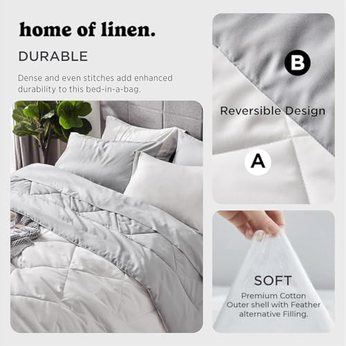 Home Of Linen - 3Pcs Reversible Heavy Comforter Set - 4Kgs - Down Alternative Filling - (For Matress 180cm/200cm) - Size (250cm x 240cm) + 2 Pillow Case Covers (50cm x 70cm) - White x Light Grey