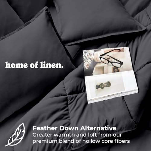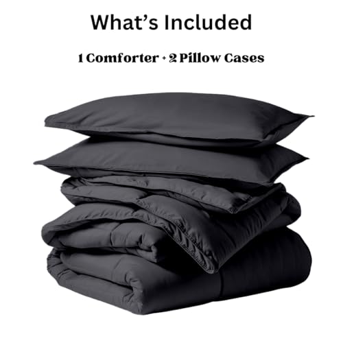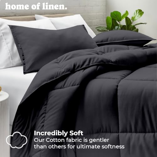 Home Of Linen - Cotton - Plain - 3 Pieces Heavy Comforter Set - 3.6Kgs - Down Alternative Filling - (For Matress 160cm/180cm) - Size (230cm x 240cm) + 2 Pillow Case Covers (50cm x 70cm) - Dark Grey