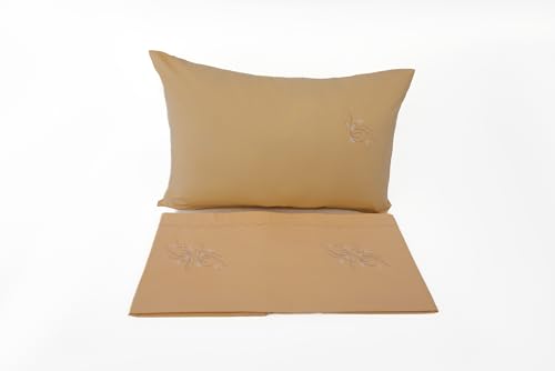 home of linen - Embroided Set 5pcs - 1 Embroided Flat Sheet (240cm * 260cm) + 2 Embroided Pillow Cas