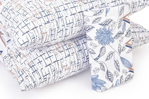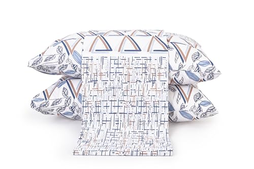 Home Of Linen - Home Of Linens - Printed Bed Set - 3 Pieces for Single Bed - 1 Flat Sheet (180cm*240cm) + 2 Pillow Cases (50cm*70cm) - Cotton - Model 713