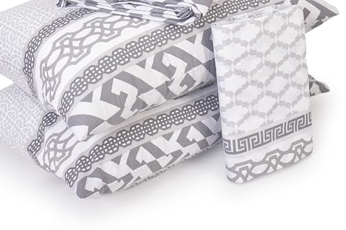 Home Of Linen - Home Of Linens - Printed Bed Set - 5 Pieces for Double Bed - 1 Flat Sheet (240cm*240cm) + 4 Pillow Cases (50cm*70cm) - Cotton - Model 716