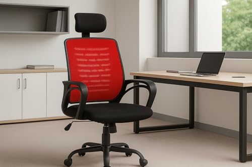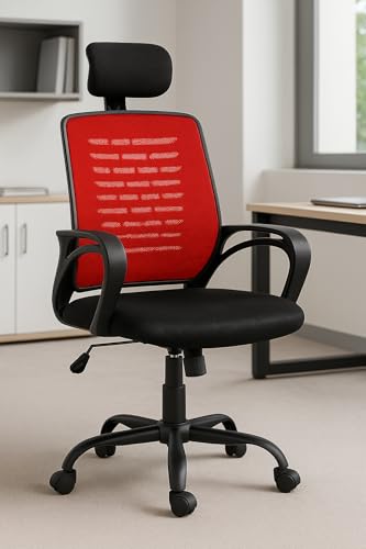 Generic - Home Office chair desk chair, Mesh Chair with Headrest (With Headrest, Red)