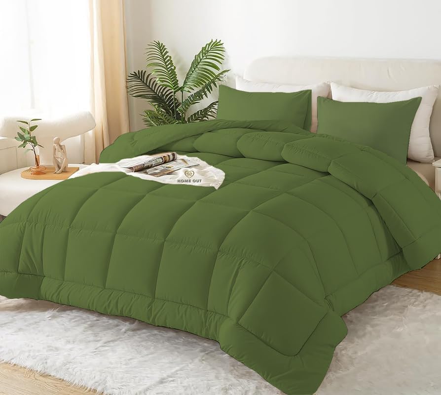 Home Out - لحاف شتوي مريح من هوم اوت: لحاف قطن مصري بحشو فايبر فائق النعومة، مقاس سرير رئيسي (2.3 × 2.4 متر) | أخضر زيتوني