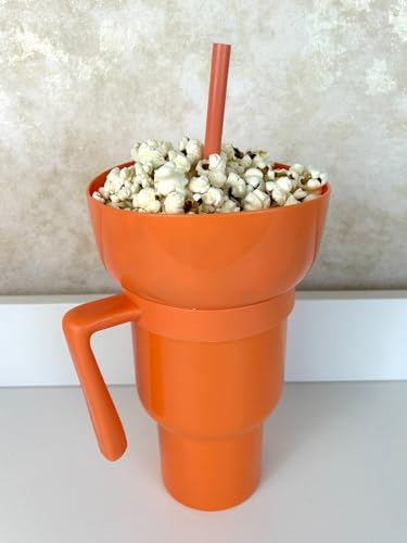 Generic - Home Paradise Plastic Cup with Snack Tray Bowl Straw, Stylish Cute 2 in 1 Snack and Drink Cup, Snack Dessert Popcorn Holder and Beverage, Perfect for One-Hand, 32oz (Orange)